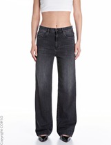Джинсы прямые от бедра, по переду и задним половинкам застрочены стрелки . По переду на уровне бедер карманы с подрезным бочком, на спинке накладные карманы.