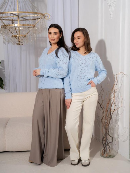 Совместные закупки Екатеринбург Женская одежда Джемперы, свитеры, водолазки — ESENIA Джемпер женский с ажуром 2 - Нежно-голубой