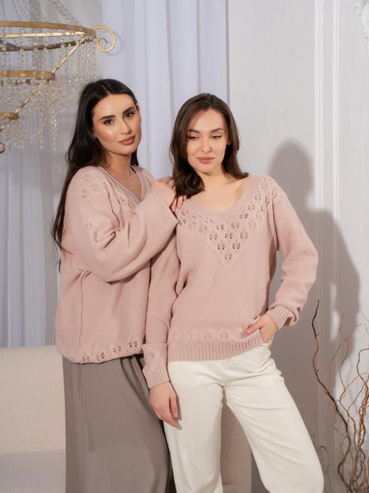 Совместные закупки Екатеринбург Женская одежда Джемперы, свитеры, водолазки — ESENIA Джемпер женский с ажуром - Пудрово-Розовый
