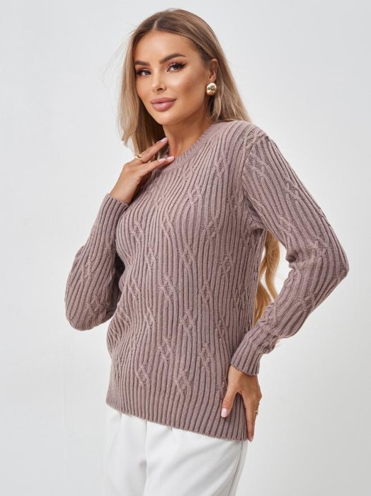 Совместные закупки Екатеринбург Женская одежда Джемперы, свитеры, водолазки — ESENIA Джемпер женский с узорной вязкой - Кофейный