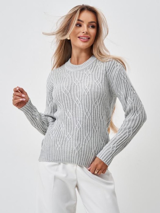 Совместные закупки Екатеринбург Женская одежда Джемперы, свитеры, водолазки — ESENIA Джемпер женский с узорной вязкой - Светло-серый