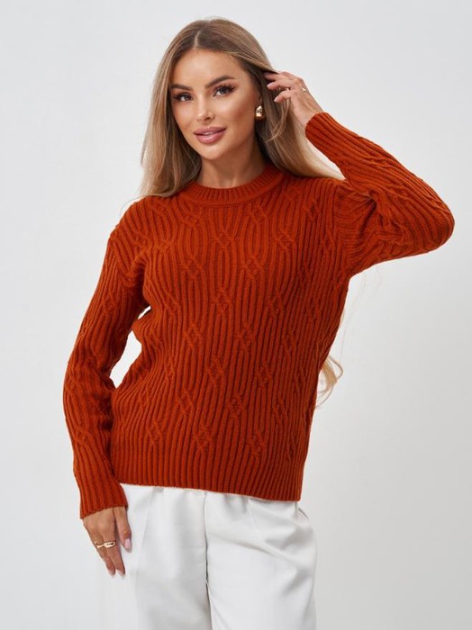 Совместные закупки Екатеринбург Женская одежда Джемперы, свитеры, водолазки — ESENIA Джемпер женский с узорной вязкой - Терракот