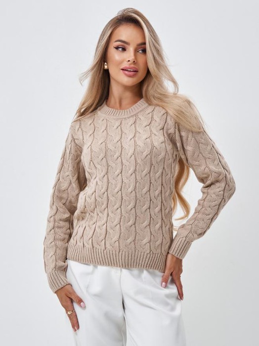 Совместные закупки Екатеринбург Женская одежда Джемперы, свитеры, водолазки — ESENIA Джемпер женский с узором "Косы" - Бежевый