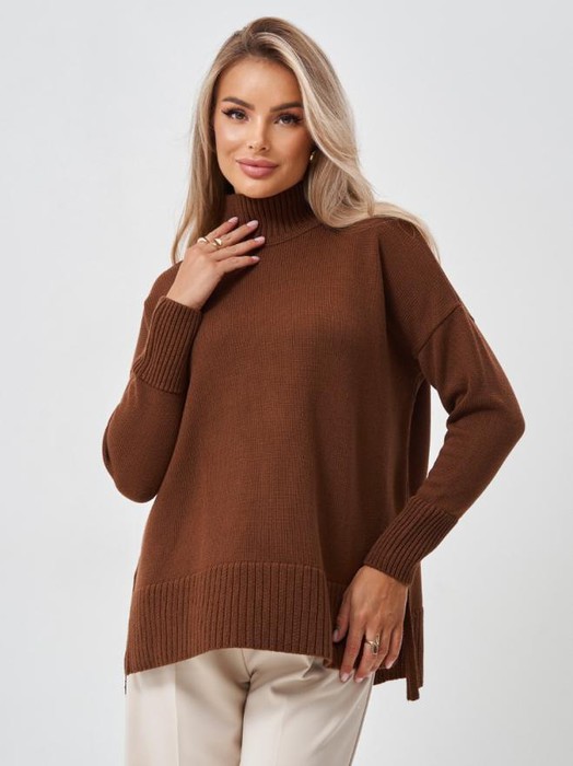 ESENIA Джемпер женский с высоким воротом и разрезами по бокам - Коричневый