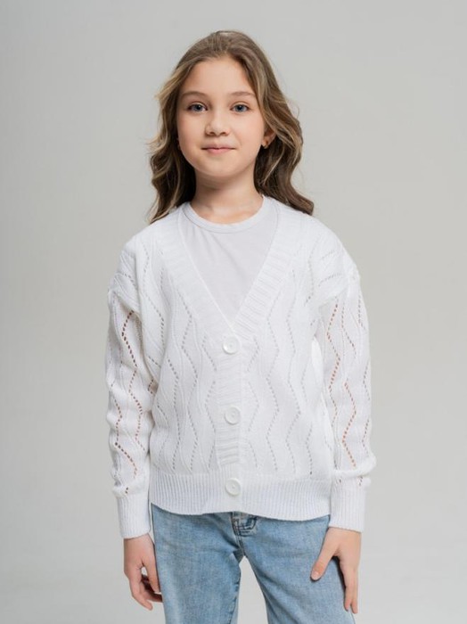ESENIA Кардиган для девочки ажурный Zig-Zag - Белый