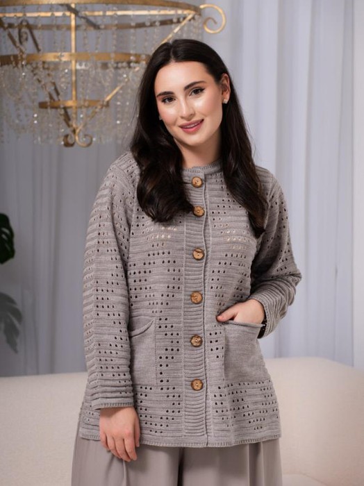 ESENIA Кардиган женский с ажурным рисунком - Кофе с молоком