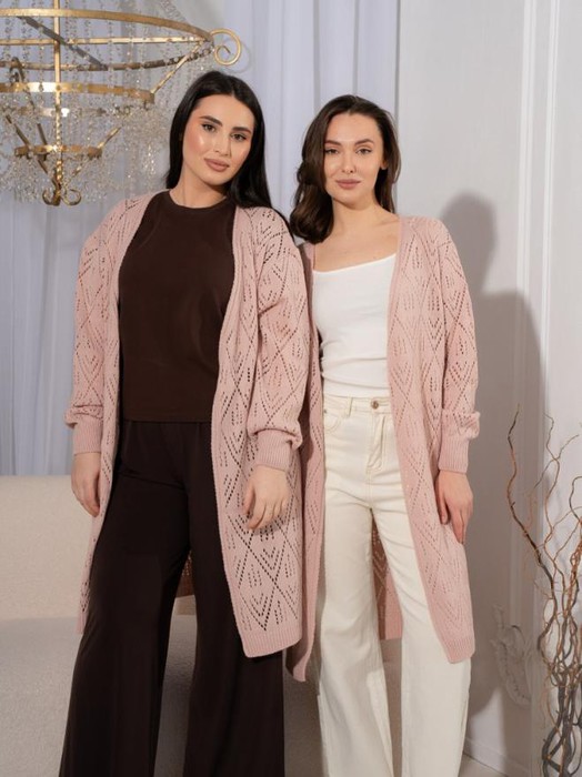 Совместные закупки Екатеринбург Женская одежда Кофты, кардиганы — ESENIA Кардиган женский удлиненный Ажур 2 - Пудрово-розовый