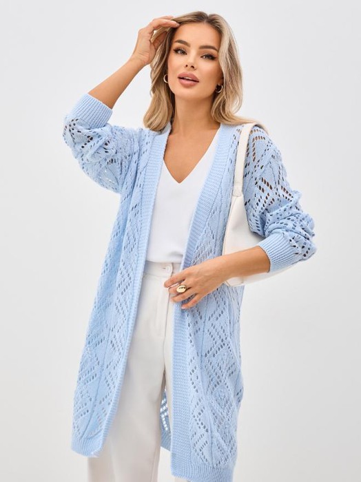 ESENIA Кардиган женский удлиненный Ажур - Нежно-Голубой