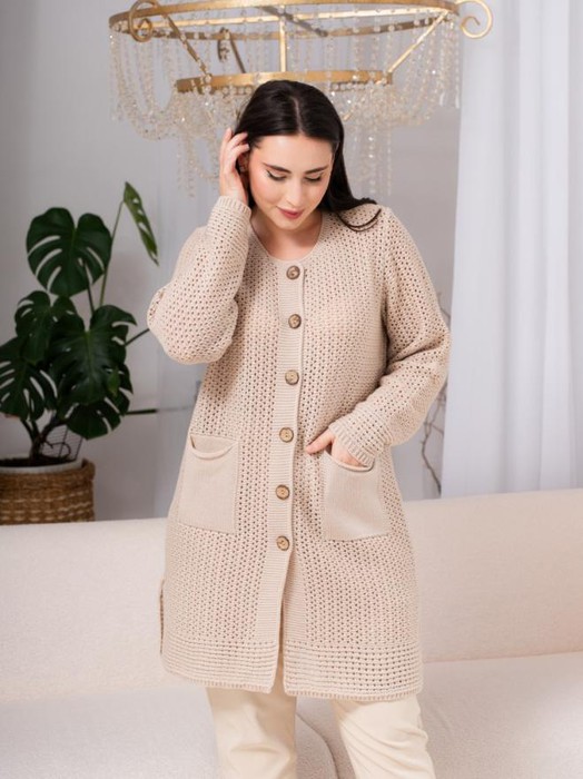 ESENIA Кардиган женский удлинённый ажурный - Бежевый