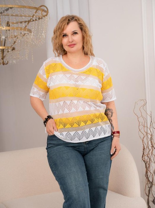 ESENIA Кофта женская летняя 100% хлопок с ажуром - Жёлтый