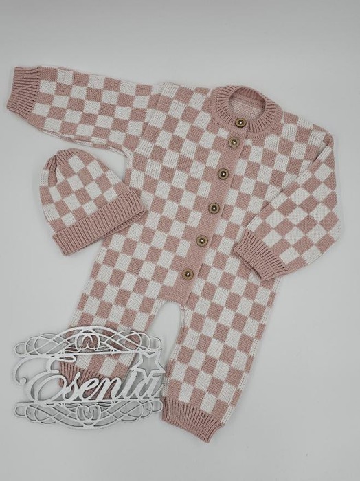 ESENIA Комбинезон детский Шахматы - Пудрово-розовый