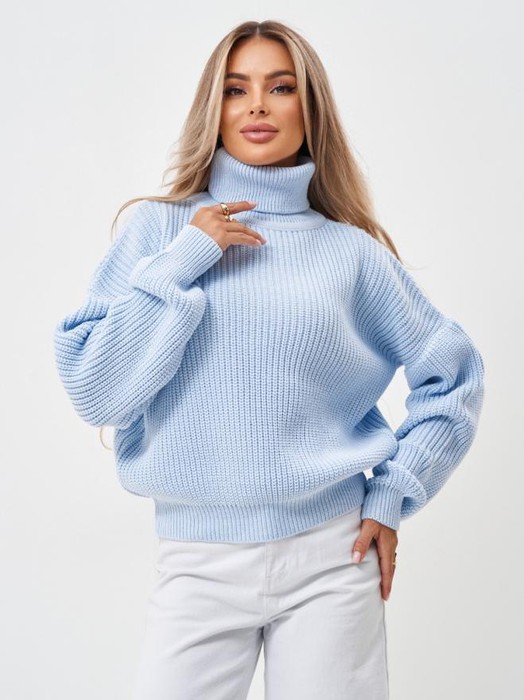 Совместные закупки Екатеринбург Женская одежда Джемперы, свитеры, водолазки — ESENIA Водолазка женская рубчик - Нежно-голубой