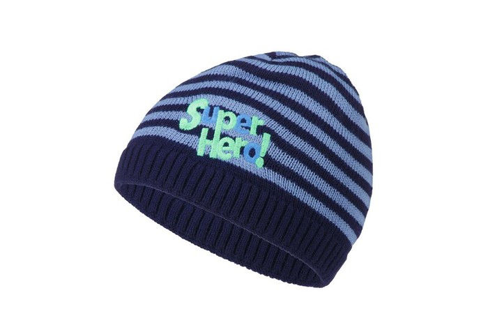 Стильная двойная полосатая шапочка дополнена яркой декоративной вышивкой. шапка комфортно облегает голову ребенка и не сползает даже во время самых активных прогулок благодаря вязаной резинке у основания.
