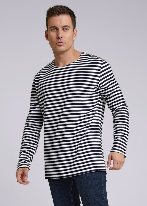 Фуфайка с длинным рукавом, с круглым вырезом горловины, свободного кроя в набивку "тельняшка" и "камуфляж". Плотность: 140гр/м2