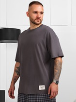 Фуфайка с коротким рукавом среднего объема, с оригинальным принтом, круглым вырезом горловины, которая оформлена обтачкой из рибаны.