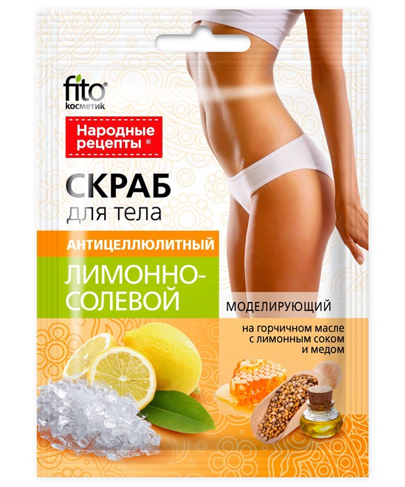 Скраб для тела Фитокосметик антицеллюлитный выравнивает кожу, устраняет несовершенства и эффект апельсиновой корки, ускоряет обменные процессы, способствует выведению токсинов, глубоко очищает и тонизирует кожу.