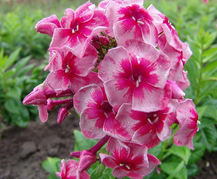 Похож на сорт «Уральские Сказы», но немного ярче. Цветки диаметром 3,2-4,0 см, колесовидные, лососёво-красные с серебристыми штрихами и крупным малиновым центром. Лепестки слегка закрученные. Цветение в июле-августе. Высота 70-90 см. Устойчивость к мучнистой росе повышенная. Место солнечное. Почва дренированная. Зона 4 (до -29ºС).