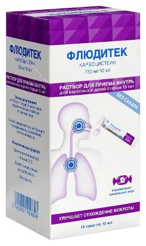 Флюдитек 750мг/10 мл №15 саше р-р д/внутр/прим