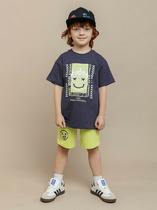 Футболка оверсайз для мальчика из трикотажного полотна: хлопкового с добавлением лайкры. Модель с принтом на переде, спущенной линией плеч, рукавами длиной до локтя.