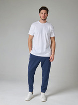 Футболка мужская из меланжированного трикотажного полотна "кулирка", свободного покроя, со спущенным плечом и втачными короткими рукавами. Горловина овальной формы обработана втачной планкой. По шву втачивания планки настрочена двойная отделочная строчка. В центре переда - принт, выплненный в технике шелкографии.