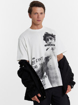 Футболка с круглым вырезом горловины свободного силуэта и со спущенной линией плеча. Модель декорирована тематическим принтом. Футболка удачно сочетается с любыми поясными изделиями данной коллекции, а так же с брюками и шортами Almando Melado.