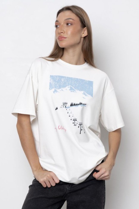 Стильная хлопковая футболка с ярким принтом, идеально подходящая для повседневного образа. Мягкий и дышащий материал обеспечивает комфорт в течение всего дня. Классический крой делает эту футболку универсальной и удобной для любого стиля.