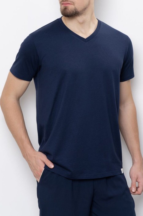 Футболка свободного прилегания с коротким рукавом и V–образным вырезом горловины. Модель представлена в 2-х цветовых решениях. Модель дополнит образ к шортам и брюкам данной коллекции, а так же любым поясным изделиям из личного гардероба.