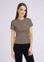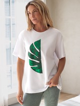 Футболка прямого свободного кроя, выполнена из хлопкового полотна глубокого синего цвета. Характеристики: прямой свободный крой, горловина овальная, край выполнен из довяза, рукав слегка спущен, по центру спинки изделия, под горловиной брендированная нашивка "Annete". Длина по центру спинки 69 см, длина рукава от края горловины 41см.