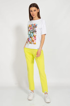 Базовая женская футболка. Крой футболки свободный, оверсайз.Вырез горловины круглый. Рукав до локтя. Линия плеча спущенная.Футболка выполнена из хлопкового трикотажного полотна.Трикотаж не просвечивается, не деформируется после стирки, легко гладится.По переду выполнена авторская печать в виде надписи “enjoy” переливающейся фольгой.Футболка универсальная, сочетается с любыми джинсами и шортами. Длина - 70 см