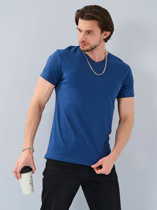 Мужская футболка F5, Slim fit (прилегающий силуэт), V-образный вырез горловины, короткий рукав. Выполнена из  трикотажного полотна стрейч.