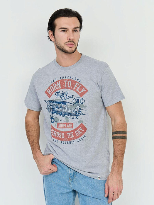 Совместные закупки Екатеринбург Мужская одежда Футболки — Футболка F5 154048/02285/Airplane серый меланж