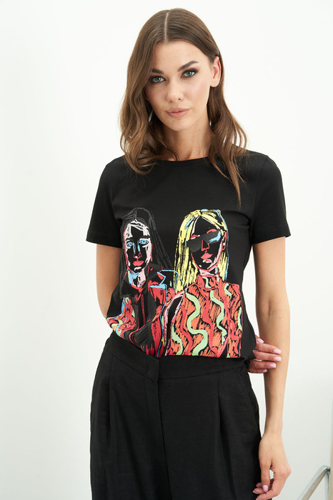 Базовые футболким - это конечно хорошо, но что делать, если хочется привнести в образ яркости, иронии и немного артистизма? Лучший способ выразить себя - выбрать вариант с классным "говорящим" принтом. Футболка классического кроя с втачным рукавом. Длина футболки около 60 см. Длина рукава около 15 см.