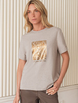 09.04 Vilatte Футболка из премиального хлопка с авторским принтом фольгой D49.