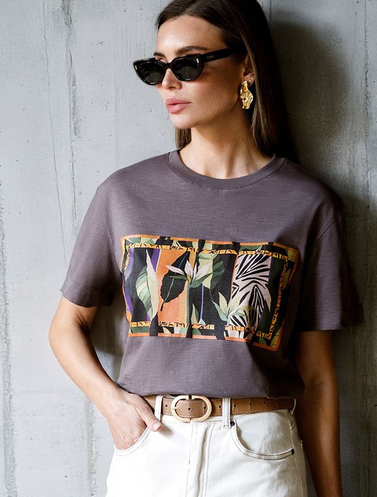 Состав: 100%Хлопок Плотность: 140 Г/м2 Параметры модели на первом фото: Рост 170, бюст 89, талия 63, бедра 92Футболка выполнена из фактурного полотна из 100% хлопка. Модель с лаконичным авторским принтом легко впишется в любой весенне-летний гардероб. Ткань имеет характерный рисунок черточки за счет сочетания разных волокон хлопка 140-150 г. Хорошо держит форму и поддерживает комфортный микроклимат в течении дня.