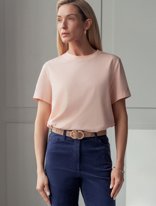 Состав: 92%Хлопок 8%ПУ Плотность: 170 Г/м2 Параметры модели на первом фото: Рост 172, бюст 88, талия 64, бедра 88Базовая однотонная футболка из премиального хлопка. Горловина выполнена из рибаны в тон изделия, Добавление эластана в состав изделия способствует формоустойчивости. Самое высокое качество хлопковых волокон обеспечивает комфорт в любое время года. Идеально держит форму и сохраняет внешний вид в течение долговременного использования. Универсальная базовая вещь для ваших стилистических решений. Изделие дополнено металлическим логотипом бренда на рукаве.