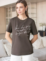 Vilatte Футболка из премиального хлопка с авторским принтом D49.983 кофе_be diff