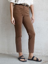 Укороченные эластичные брюки слим из микро вельвета