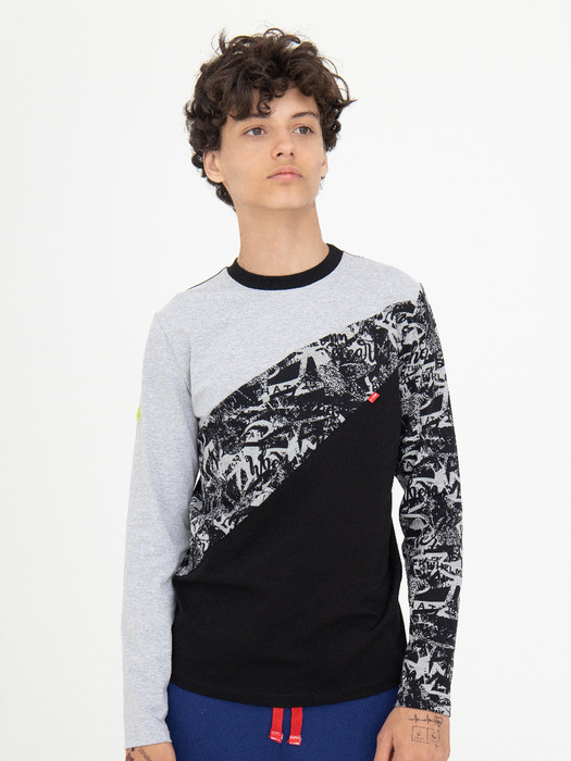 Лонгслив для мальчика прямого силуэта, средней длины, с длинными втачными рукавами, с круглым вырезом горловины. Полочка разрезная, все детали лонгслива выполнены из полотен коипаньонов. В качестве дополнительного декора использованы брендовые этикетки и флажки.