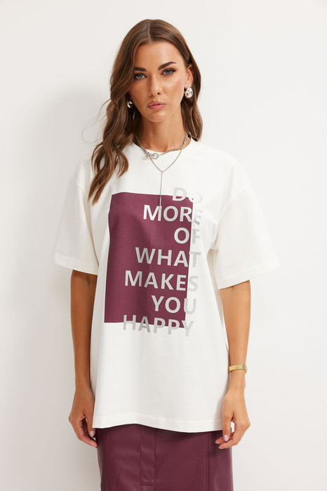 Джемпер женский свободного силуэта из комфортного трикотажного полотна, длиной до линии бедер. Горловина округлая. Рукав со спущенной линией плеча длиной до локтя. По переду расположена дизайнерская печать. Обращаем ваше внимание, что фурнитура может отличаться от фото.