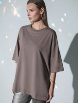 21.04 Vilatte Футболка оверсайз с принтом стразами из премиального хлопка с элас