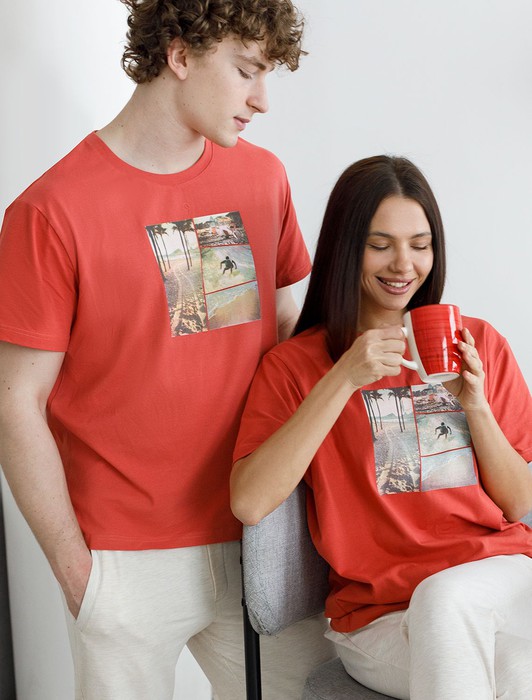 Совместные закупки Екатеринбург Мужская одежда Футболки — Футболка мужская коралловая с принтом