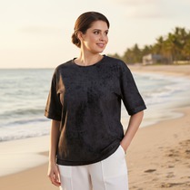 Объемная футболка оверсайз выполнена из плотного хлопкового трикотажного полотна (интерлок). Спущенная линия плеча. Рукав до локтя.. Горловина круглая с притачной планкой. Дизайнерский принт “APEROL” на передней половинке футболки.