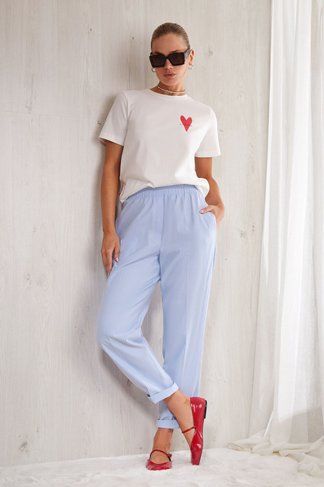 Футболка прямого кроя, выполнена из плотного трикотажного полотна (интерлок)  Немного спущенная линия плеча. Короткий рукав. Горловина круглая        с притачной планкой.    Авторский принт на полочке изделия.