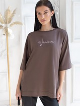 Состав: 92%Хлопок 8%ПУ Плотность: 170 Г/м2Оверсайз футболка кофейного цвета с из премиального хлопка с добавлением эластана создана для комфорта и стиля каждый день. Натуральный материал приятный к телу, дышащая ткань хорошо держит форму и подходит для повседневной носки дома, в офисе или на прогулке. Классический свободный крой, удлиненный прямой силуэт и свободная посадка делают эту базовую футболку универсальным решением для любой фигуры и роста, включая плюс сайз размеры и беременных девушек, отлично скроет животик. Широкие рукава держат форму и подойдут на полные руки. Нарядная футболка украшена авторским принтом в виде надписи блестящими стразами, которые создают красивый мерцающий эффект. Перевод надписи Whatever - Что бы ни... Такой акцент делает модель уместной как для особых случаев, так и для ежедневных образов.