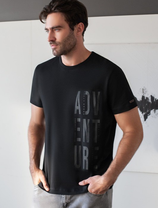 Состав: 92%Хлопок 8%ПУ Плотность: 170 Г/м2Футболка черного цвета из премиального хлопка с эластаном плотностью 170 Г/м2 станет универсальным решением для любого случая. Прямой крой обеспечивает комфортную посадку на любую фигуру, включая большие размеры, подходит как на низкий, так и на высокий рост. Благодаря сочетанию натурального хлопка и эластана, ткань отлично дышит и слегка тянется, сохраняя форму после стирок. Однотонная футболка выполнена в минималистичном стиле, дополнена принтом в виде надписи. Перевод надписи: Adventure - Приключение. На рукаве нашивка из эко-кожи с логотипом VILATTE. Подходит как классический вариант для работы в офис, так и для повседневной носки или занятий спортом. Мягкая ткань приятна к телу, не вызывает дискомфорта и идеально подходит для дома или летних прогулок благодаря короткому рукаву. Простая и практичная футболка станет базовым элементом вашего гардероба. Она легко сочетается в спортивном или классическом стиле. Стрейч-ткань поддерживает свободу движений и подчеркивает индивидуальный стиль каждого мужчины.