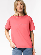 Vilatte Футболка из хлопкового облегченного полотна со стразами D49.019 розовый_