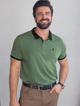 Футболка поло с воротником на пуговицах из полотна пике с меланжевым плетением с