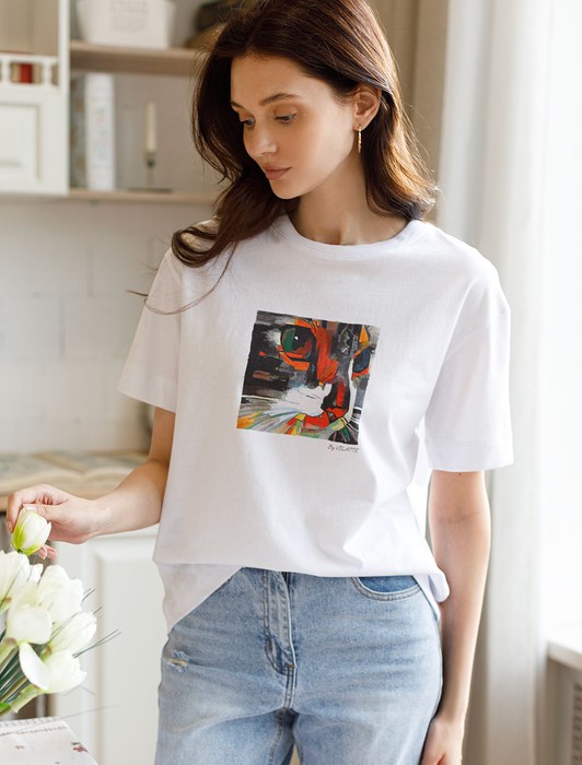 Состав: 100%Хлопок Плотность: 140 Г/м2Футболка белого цветавыполнена из премиального 100% хлопка плотностью 140 Г/м2. Главная особенность этого изделия — тонкое кулирное полотно, которое легче и воздушнее стандартного варианта. Благодаря своей деликатной текстуре футболка идеально подходит для домашних образов и пижамных комплектов. Ткань отлично дышит, обеспечивая максимальный уют во время сна и отдыха. Особое внимание привлекает стильный принт контрастного яркого цвета в виде кота. Принт выполнен красками с устойчивым покрытием, который добавляет изделию оригинальности и позволяет выразить индивидуальность. Свободный крой футболки дарит удобство и не стесняет движений, что делает ее идеальной для повседневной носки или активного отдыха, подчеркивает современный взгляд на моду. Подойдет девушкам и женщинам на любую фигуру, вы будете чувствовать себя в ней уверенно и комфортно. Лаконичный современный принт делает изделие универсальным: можно создавать стильные образы для прогулок, встреч, занятий спортом и домашних дел. Базовая футболка подходит для любой ситуации и сочетается с разными элементами гардероба.