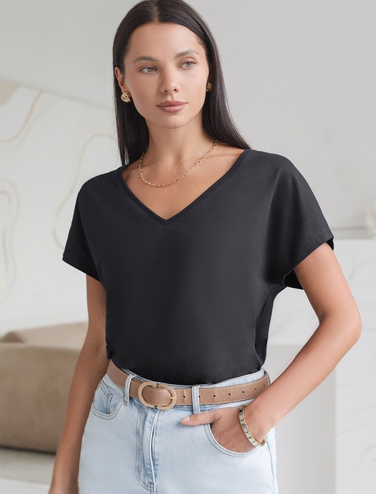 Состав: 92%Хлопок 8%ПУ Плотность: 170 Г/м2Стильная свободная футболка черного цвета с выразительным V-вырезом создана для девушек и женщин, которые ценят комфорт и натуральность. Прямой крой обеспечивают непревзойденную легкость в теплую и жаркую погоду, позволяя телу дышать. Натуральный хлопок премиального качества — отличается дышащими свойствами и высокой износостойкостью, подходит для самой чувствительной кожи. V вырез гармонично подчеркивает линию шеи, такой вырез визуально удлиняет силуэт, подчеркивая достоинства фигуры. Цельнокроеный рукав гарантирует свободу движений и аккуратную посадку, что особенно актуально для активного образа жизни. Подойдет на большие размеры, комфортно сидит любой фигуре. Повседневная футболка сочетается с базовыми и акцентными элементами одежды, позволяет создавать различные повседневные или яркие образы.