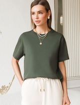 Футболка женская из гладкокрашенного трикотажного полотна «кулирка», свободного силуэта, с боковыми швами, переходящими в рельефы, в правом соединительном шве выполнен разрез. Горловина овальной формы обработана втачной планкой и дополнена декоративным элементом.